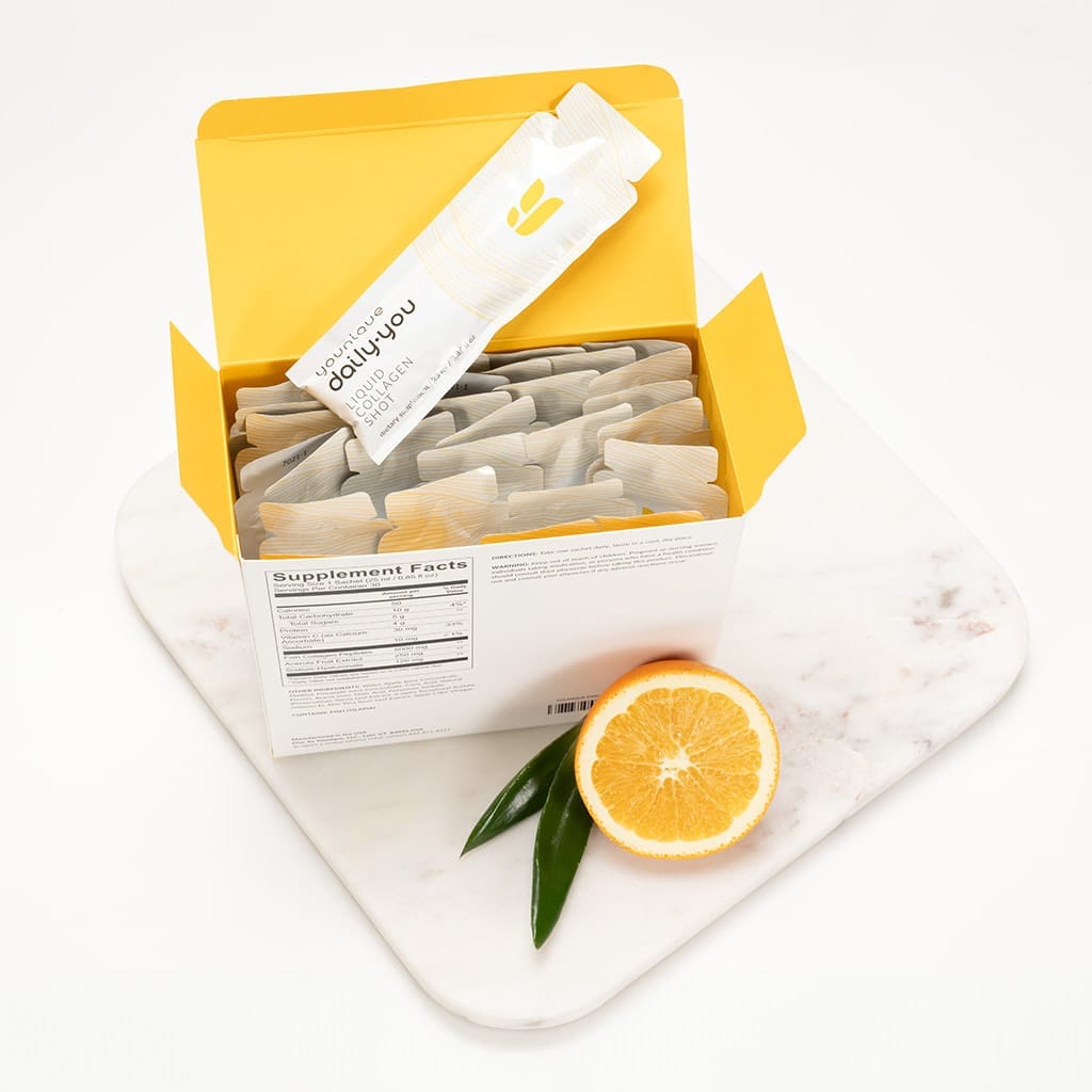 J’ai intégré le soin au collagène liquide Younique Daily You à ma routine matinale et, après cinq semaines d’utilisation, le rituel est devenu un vrai petit plaisir. J’ouvre le sachet, je le secoue légèrement, puis je le bois pur ou dilué dans une gorgée d’eau selon le temps dont je dispose; le goût mangue-agrumes est frais sans être trop sucré, ce qui rend la prise très simple à tenir chaque jour.